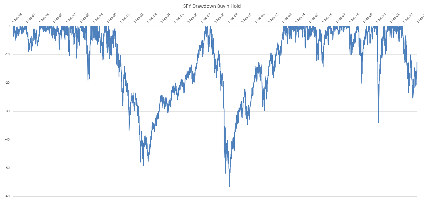 In last 20 years or so, we had 2 major black swan events resulting in two 50% drawdowns and drawdowns are very important to avoid, because the market might remain under water for very, very long period of time, just check Japan, the strongest market in the world at the time, is still almost 50% down from it's peak for 30 years and counting! Imagine being buy and hold investor about to retire...